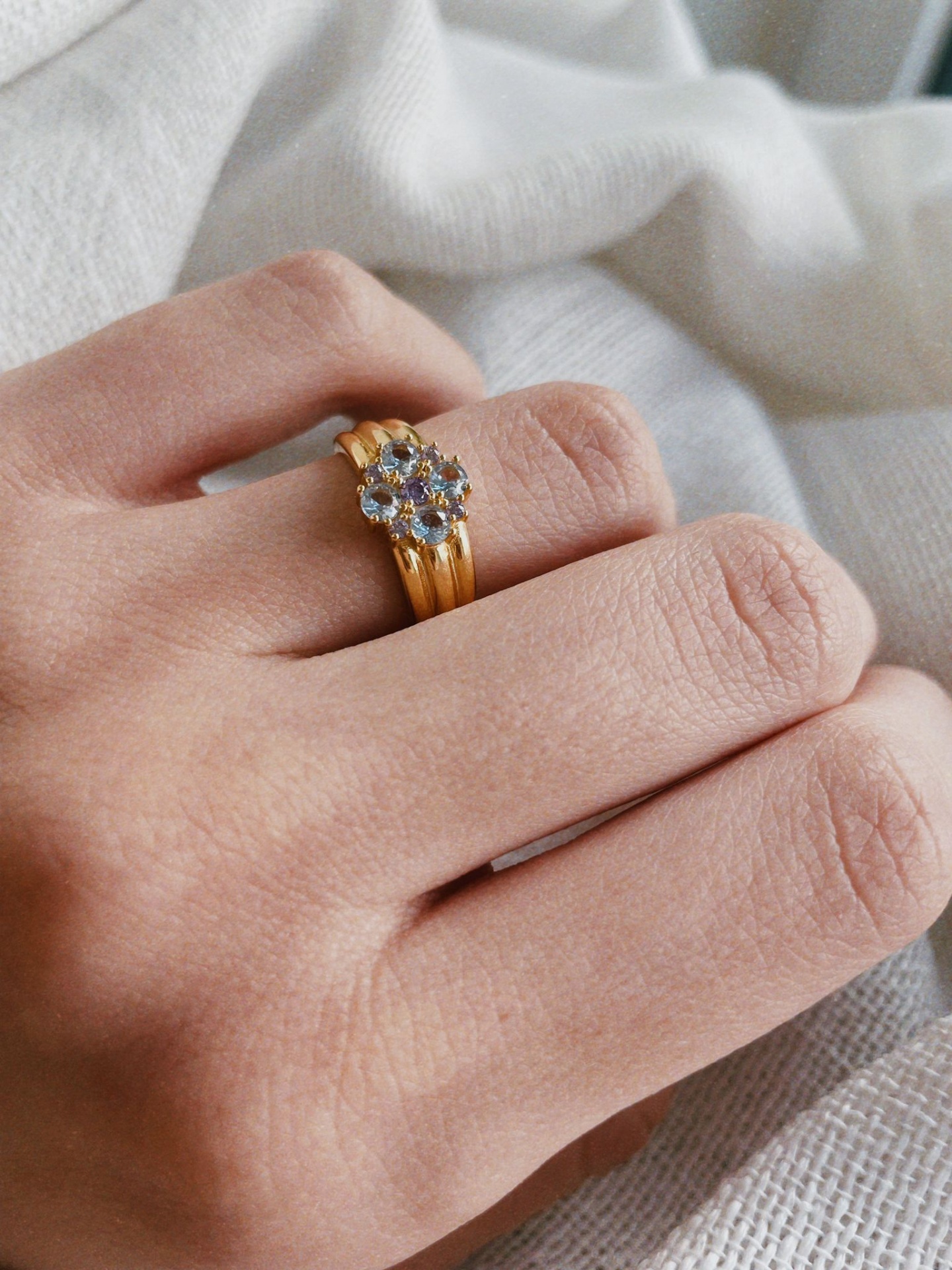 Anel em prata dourada - Isabella 36,00 € Desconto de %. IVA incluído. Partilhar Compre este produto e ganhe 36 Pontos! Escolher cor pedras: Azuis Lilás Comprar Contactar material: prata dourada cores pedras: azuis ou lilás