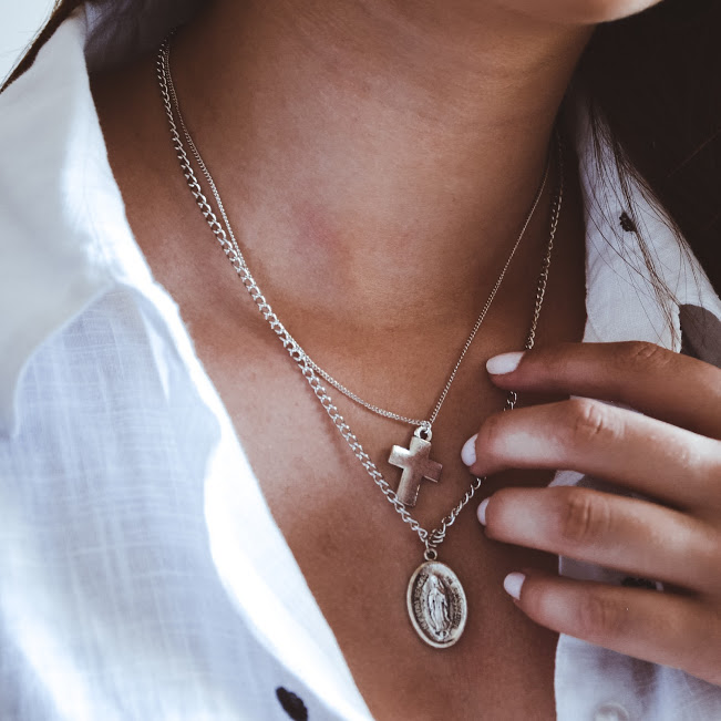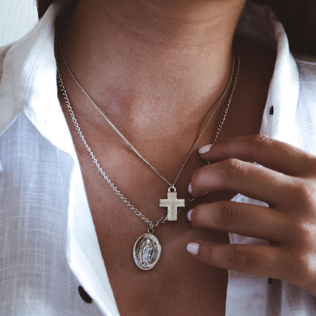 Colar - West 10,00 € Desconto de %. IVA incluído. Partilhar Compre este produto e ganhe 10 Pontos! Escolher colar: Colar - Cruz Colar - Nossa Senhora Conjunto (Cruz+ Nossa Senhora) Escolher material: Aço Comprar Contactar Corrente em aço e medalhas em zinco