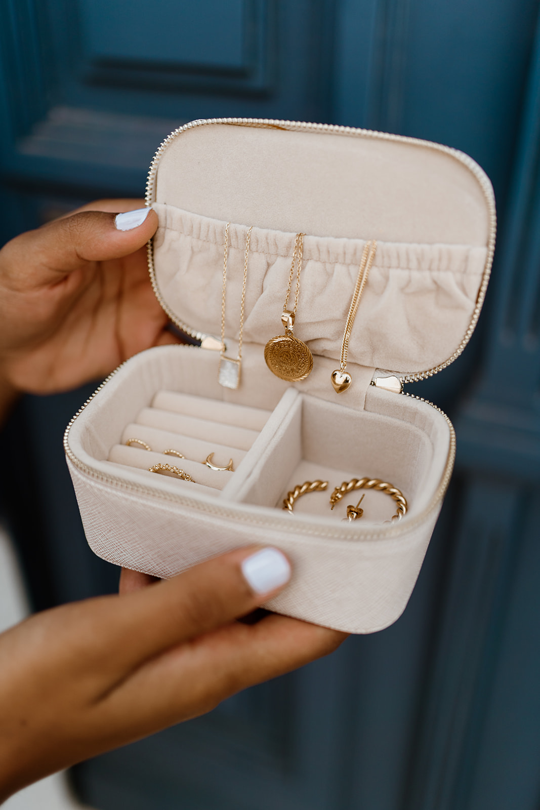 Jewelry Case - Large 28,00 € Desconto de %. IVA incluído. Partilhar Compre este produto e ganhe 28 Pontos! O produto encontra-se sem stock. medidas: 13cm x 8cm x 5,5cm material: couro cores disponíveis: beje