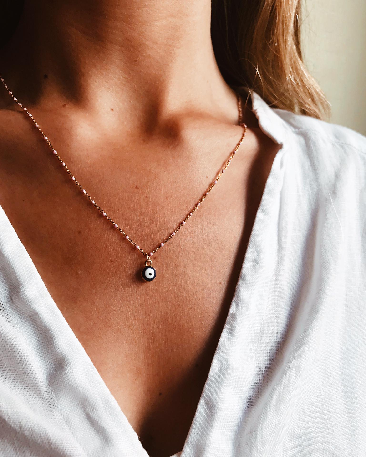 Colar em Aço - Olho turco 11,90 € 14,00 € Desconto de %. IVA incluído. Partilhar Compre este produto e ganhe 11 Pontos! Escolher corrente: Lisa Lisa com bolinhas rosa claro Comprar Contactar VALENTINES15. Válido de 29 de Janeiro de 2026 às 00:00 até 15 de Fevereiro de 2026 às 00:00. Materal: aço cor: dourado