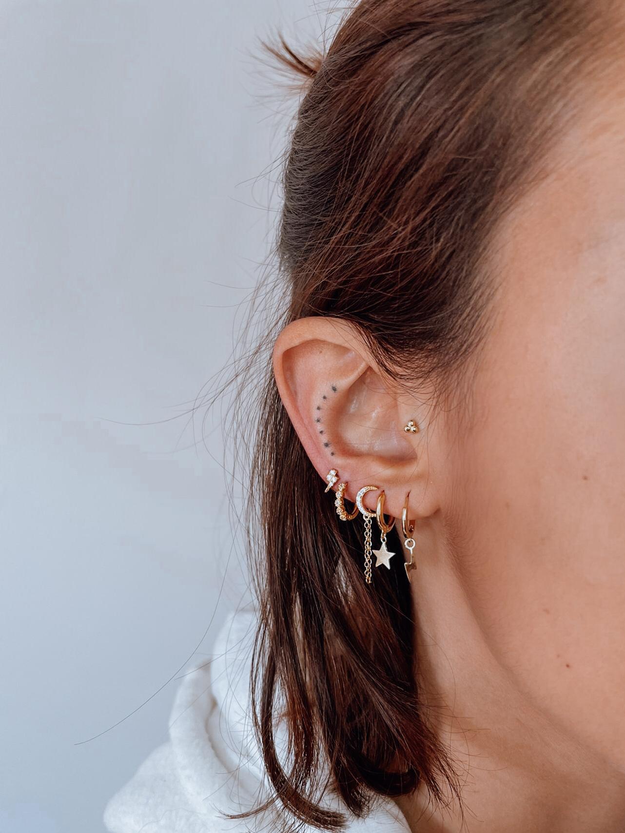 Mix Earrings (vendidos à unidade) 10,00 € Desconto de %. IVA incluído. Partilhar Compre este produto e ganhe 10 Pontos! Escolher brinco: nº1 - Lightning nº2 - Star nº3 - Moonlight nº4 - Lucy nº5 - Lightning nº6 - Tiny Dots Escolher cor: Dourado Prateado Comprar Contactar material: prata cores disponíveis: dourado e prateado